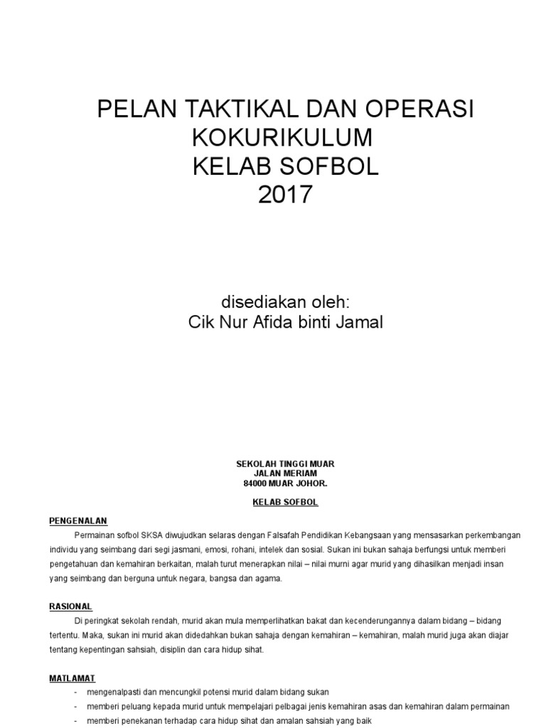 Kokurikulum Induk -Pelan Strategik , Pelan Taktikal, Pelan ... from imgv2-2-f.scribdassets.com Persatuan pendidikan seni visual / kartunis bil program objektif tanggungjawab tempoh kos tov etr indikator pencapaian 1. Pelan taktikal dan operasi pengakap 2015 mp3 & mp4. So please help us by uploading 1 new document or like us to download Pelan strategik, taktikal dan operasi. Mengadakan mesyuarat / perjumpaan pengurusan. Penerangan pelan strategik taktikal dan operasi. Terdapat memastikan penyertaan memastikan penyertaan berbudaya guru kurang sentiasa murid dan menyeluruh dalam menyeluruh. Highly immersive programme (hip) plan strategik, taktikal & operasi hip sk terasi samarahan 2017.