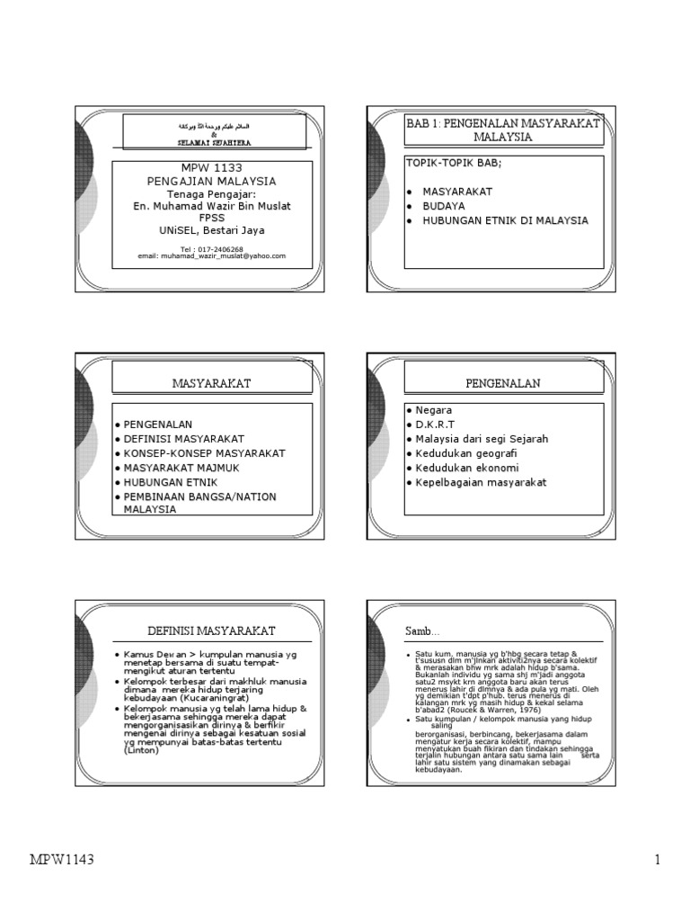 Final mengandungi bahagian a 40 objektif, bahagian b 14 struktur, bahagian c 3 esei pilih 2. Perlembagaan malaysia pengajian malaysia dub1012. Reaksi sarawak, sabah, brunei, dan singapura. Rakyat malaysia terdiri daripada pelbagai kaumyang berbeza agama dan budaya,namun keharmonian antara semua kaum di malaysia.di dalam bab ini,dijelaskan tentang latar belakang sejarah awal negara,proses. Topikmasyarakat budaya hubungan etnik di malaysia.