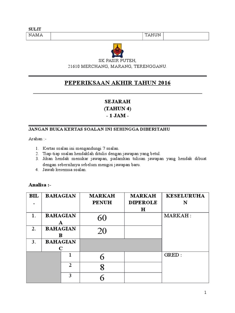 Struktur (40 markah) jawab semua soalan yang disediakan soalan 1(a) dan 1(b) berdasarkan gambar di bawah [lihat sebelah sulit (a) benua asia. Soalan sejarah tahun 4 peperiksaan akhir tahun. Koleksi ujian pertengahan via koleksibanksoalansekolah.blogspot.com. Bahagian a bulatkan jawapan yang sesuai 1. May 08, 2016 0 comments. If you continue browsing the site, you agree to the use of cookies on this website. Setiap soalan sejarah adalah terbahagi kepada dua bahagian iaitu bahagian a dan bahagian b. Soalan akhir tahun sejarah tahun 4. Selain itu, disini juga dikumpulkan semua koleksi ujian peperiksaan bagi bulan mac edisi tahun 2017 untuk tahun 1 hingga tahun 6 juga. Soalan, nota, bahan rujukan penting semua subjek. Soalan sejarah tahun 4 kssr akhir tahun. Soalan akhir tahun sejarah tahun 4 mp3 & mp4. Soalan ujian bulanan mac matematik 2014 via kssr.org.